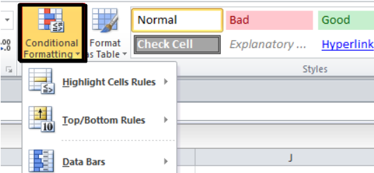 2.Üzerine tıklayınKoşullu biçimlendirmeaçılır menü ve okuNet kurallarseçenek.