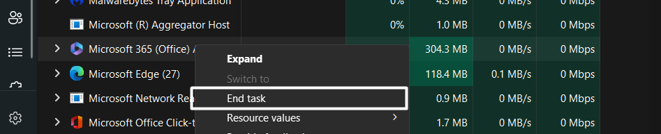 Windows 11'de Microsoft Excel çalışma sorununu düzeltmek için en kolay düzeltmelerden birikapatın ve yeniden başlatın. Bu, çalışmasıyla ilgili tüm sorunları çözebilir ve sürekli dondurulmasını veya çökmesini engelleyebilir. Microsoft Excel'i kapatmak için bahsedilen adımları deneyin: