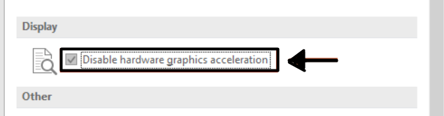 3.İçindeGelişmişsekme,Donanım grafik hızlandırmasını devre dışı bırakınBox AltındaGörüntülemek.