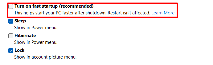 Bu nedenle size öneriyoruzHızlı başlatmayı devre dışı bırakınPC'nizde ve durumu iyileştirip iyileştirmediğini kontrol edin. Aşağıda aynı şeyi yapmak için adımlar var: