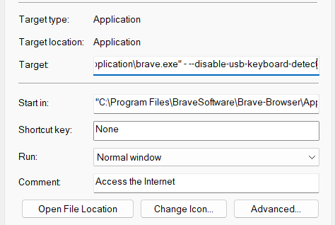 6. Krom kısayolunun hedefini değiştirin