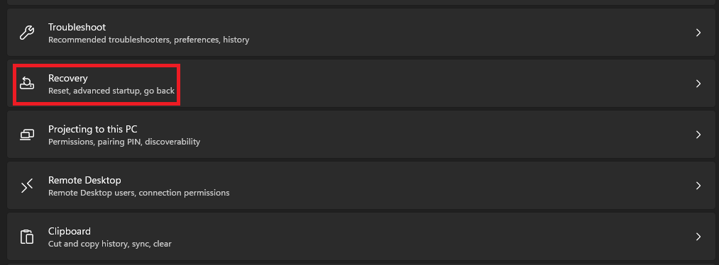 Son fakat en önemlisi, hiçbir şey ekrandaki klavyeyi düzeltmezse, çalışma sorununu göz önünde bulundurabilirsinizWindows PC'nizi varsayılan olarak sıfırlama. Bunu yapmak, işletim sistemindeki bazı aksaklıklar nedeniyle görünürse, ekran klavyesi ile ilgili sorunu çözecektir. Bu nedenle, çalışıp çalışmadığını görmek için aşağıdaki talimatları uygulayarak Windows 11 PC'nizi varsayılan olarak sıfırlamayı deneyin: