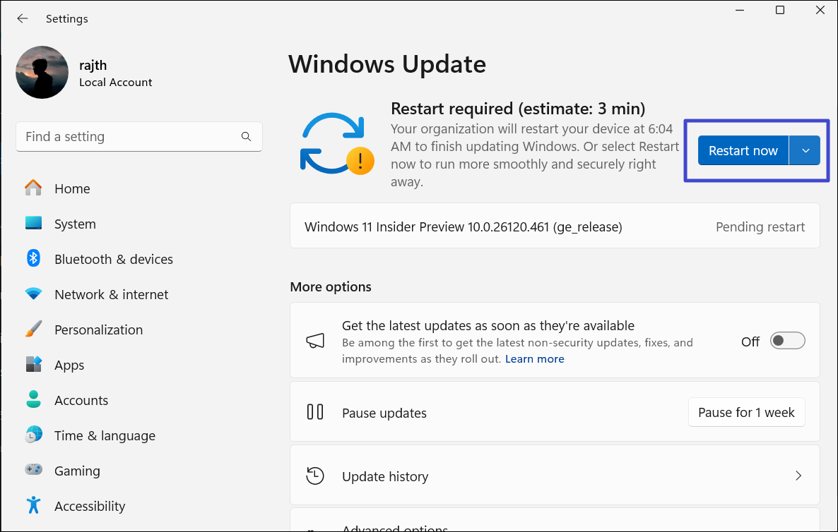 0x8007016A gibi onedrive sorunları, Windows'un kusurlu veya eski sürümleri nedeniyle de olabilir. Bu nedenle,Kaldırılmış Windows güncellemelerini uygulayınHerhangi bir sofistike sorun giderme tekniği kullanmadan önce. Windows'u güncelleme adımları: