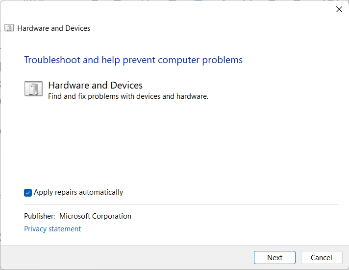 Birçok kullanıcı, hatanın hatalı bir donanım cihazı nedeniyle göründüğünü bildirdi. PC'nize bağlı donanım bileşenleri ile ilgili bir sorun olması mümkün olabilir. Windows Donanım Sorun Giderici'yi kullanarak donanım sorunlarını arayabilirsiniz. Aşağıda belirtilen adımlar aynı şeyi gösterir.