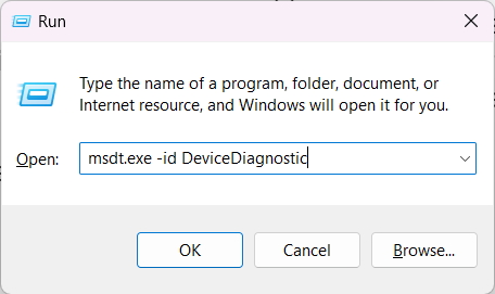 2.Tipmsdt.exe -id DeviceAnagnosticaçmak içinDonanım ve Cihazlar Sorun Giderici.