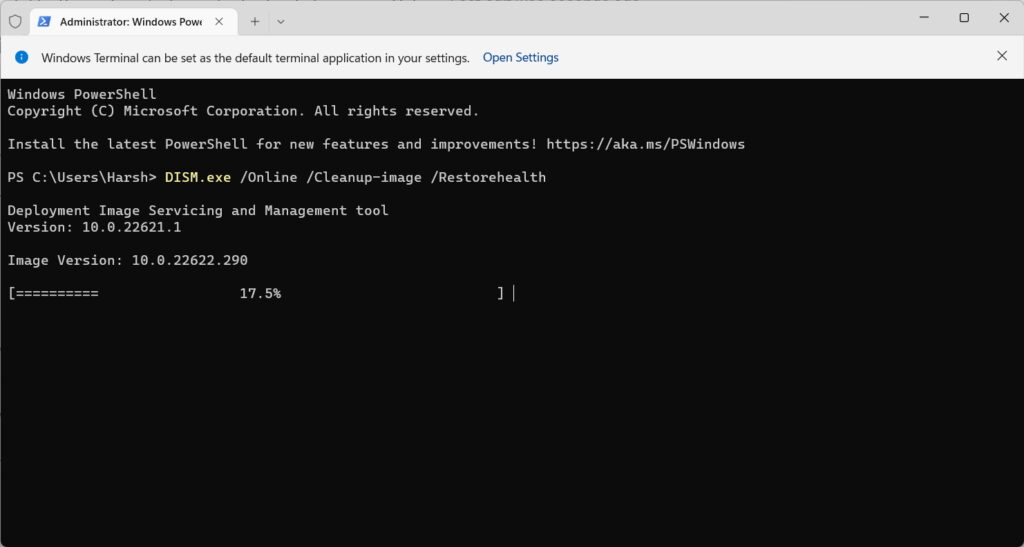 9. Yolsuzluk sistem dosyalarını onarmak için Dis Dis Disc ve SFC'yi kullanın