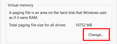 7.Üzerine tıklayınDeğiştirmekiçindeki düğmeSanal bellekbölüm.