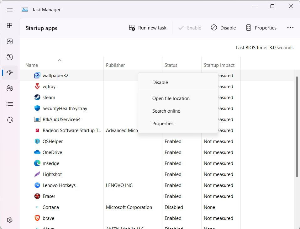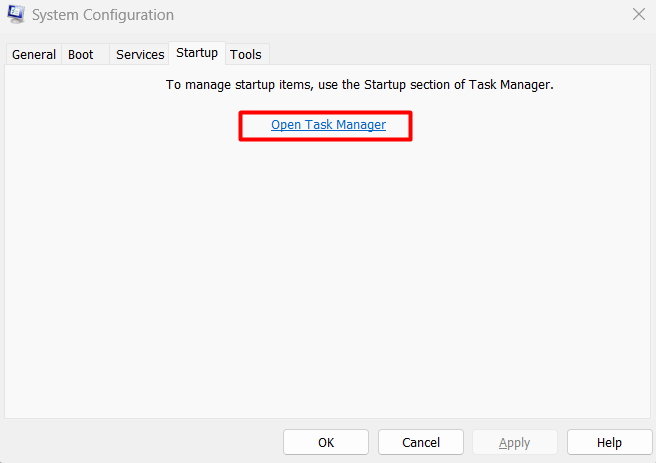 6.TaşınBaşlangıç sekmesive tıklayınAçık Görev Yöneticisi.