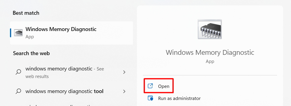 2.TipPencere Bellek teşhisiiçindeArama çubuğu.
