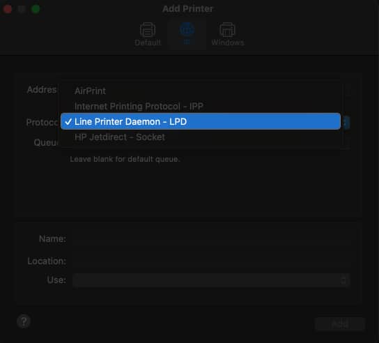 Daha eski yazıcıların veya daha önce AirPrint aracılığıyla bir yazıcı kurmuş ancak yine de süresi dolmuş yazıcı şifreleme kimlik bilgileri sorunlarıyla karşılaşan kullanıcılar için, LPD (Line Yazıcı Daemon) protokolünü kullanarak yazıcıyı yeniden yükleyin.