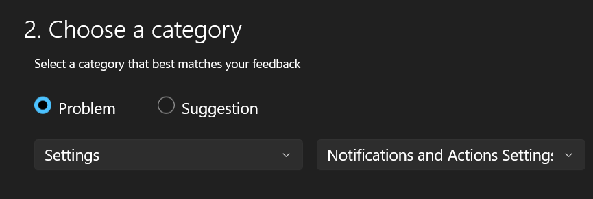 5.SeçinSorunAltında Radyo DüğmesiGeri bildirimlerinize en iyi eşleşen bir kategori seçin.