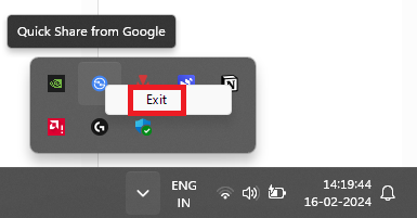 PC'nizdeki Google'ın hızlı paylaşım uygulamasını yeniden başlatmak için bu adımları izleyin:
