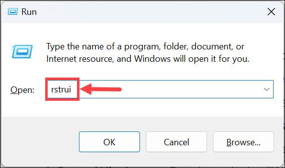 2.“Sistem Geri Yükleme” penceresini açmak için bu komutu yazın:kaydırmak için