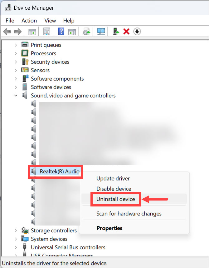 Ses sürücülerini güncellemek yardımcı olmazsa, bunları yeniden yüklemeniz gerekebilir. Bunu şu adımları izleyerek yapabilirsiniz: