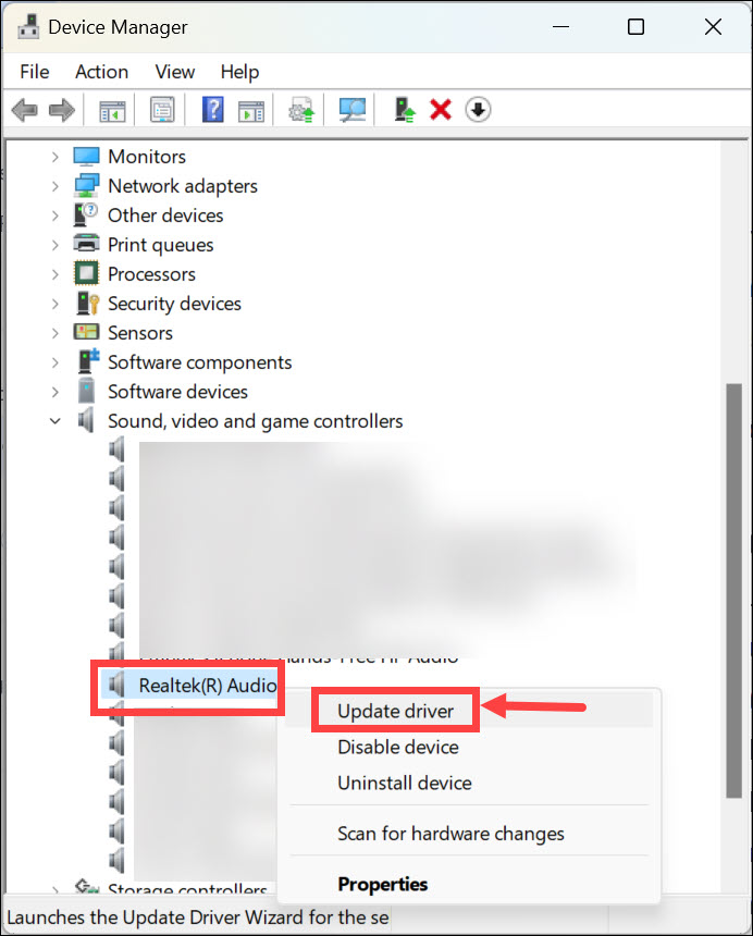 3.Sağ tıklayınRealtek (R) Sesve seçSürücüyü güncelle.