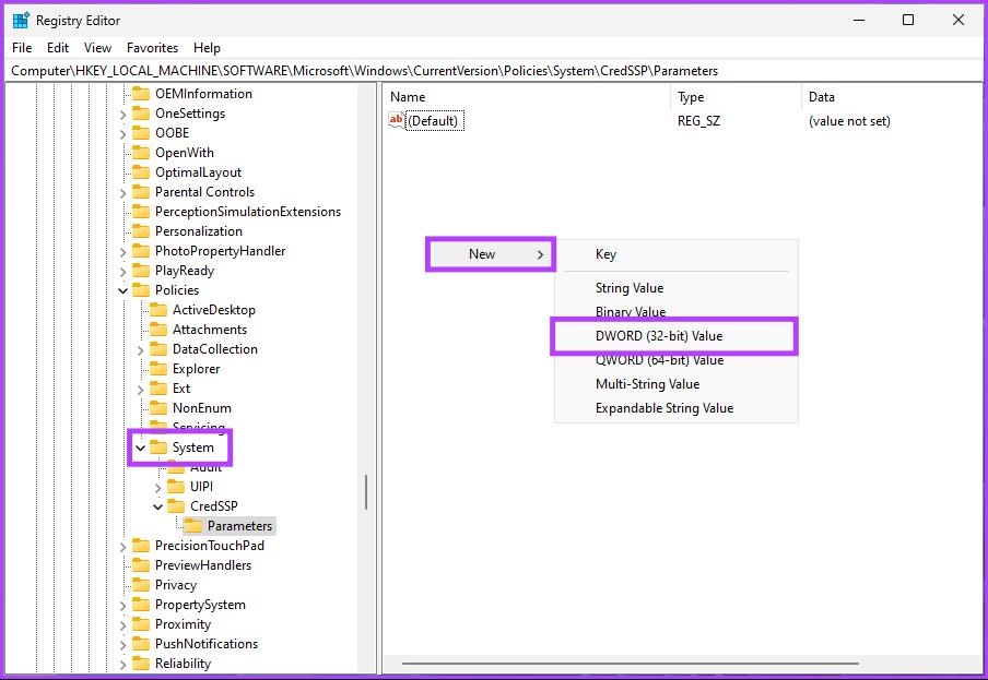 HKEY_LOCAL_MACHINESOFTWAREMECROSOFTWINDOWSCurrentVersionPolicIessystemcredsparameters