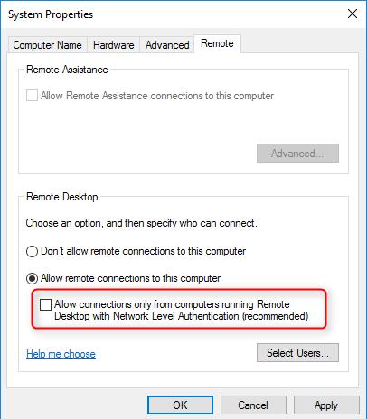Çözüm 3: Ağ seviyesi kimlik doğrulamasını kapatın