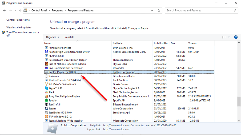 Bir Windows PC'de Roblox'u kaldırmak için: