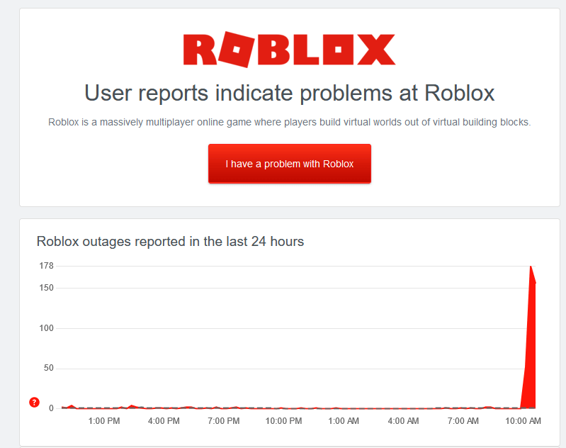Roblox sunucuları sunucu bakımı için veya başka sorunlar yaşıyorsa Roblox 524 Birleştirme hatasını alabilirsiniz. Bunu kontrol etmek için, Twitter veya Facebook gibi sosyal medyada bahsettiğiniz bir göz atabilirsiniz. Orada hiçbir şey yoksa, bir sitedeki Roblox sunucu durumunu kontrol edin.Aşağı dedektör.
