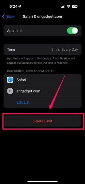6. İPhone'da Safari için Ekran Süresi Sınırını Devre Dışı Bırak/Sil