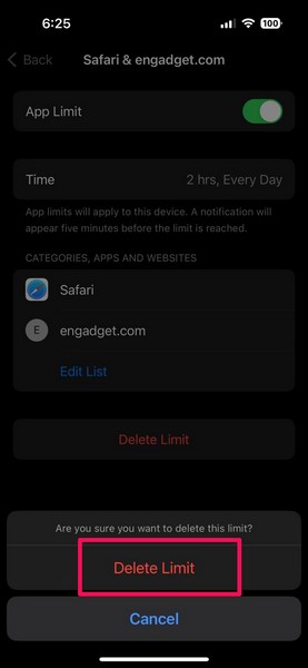 Cihazınızdaki tarayıcı için uygulama sınırını sildikten sonra, Safari çalışma sorunu iyi bir şekilde çözülmelidir.