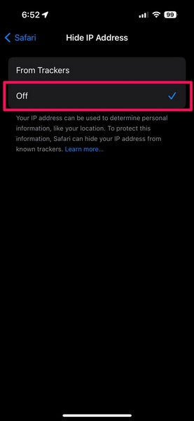 Temelde bu! Bu şekilde iPhone'unuzdaki Safari için IP adresi özelliğini devre dışı bırakabilirsiniz. Değişikliği yaptıktan sonra, Safari uygulamasını (açılırsa) zorla kapatın, cihazınıza yeniden başlatın ve düzgün çalışıp çalışmadığını kontrol edin.