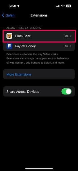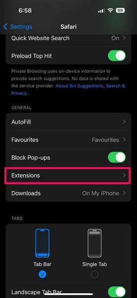 10. İPhone'da sorunlu safari uzantılarını devre dışı bırakın