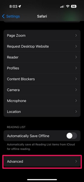 Dolayısıyla, şu anda cihazınızda Safari Çalışmayan Sorunla karşılaşıyorsanız, web tarayıcısı için söz konusu seçeneği devre dışı bırakmayı deneyebilirsiniz. İPhone'unuzda bunu yapmak için aşağıdaki adımları takip edebilirsiniz: