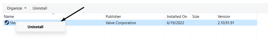 15. Steam uygulamasını kaldırın ve yeniden yükleyin