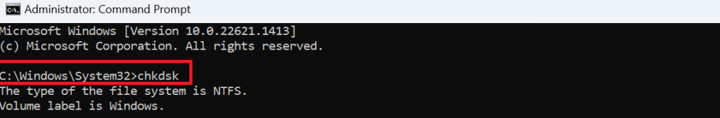 - Şimdi yazın'chkdsk'Ve basınGirmek