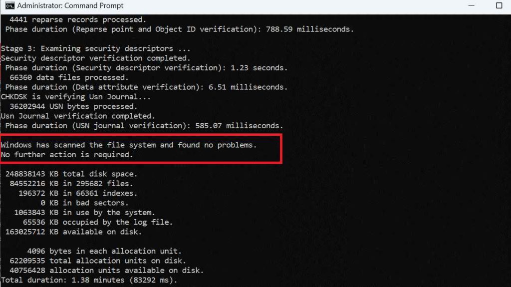 - Bir mesaj aldığınızda"Windows dosya sistemini taradı ve sorun bulamadı,"Sorunun donanımla ilgili olmadığını gösterir.