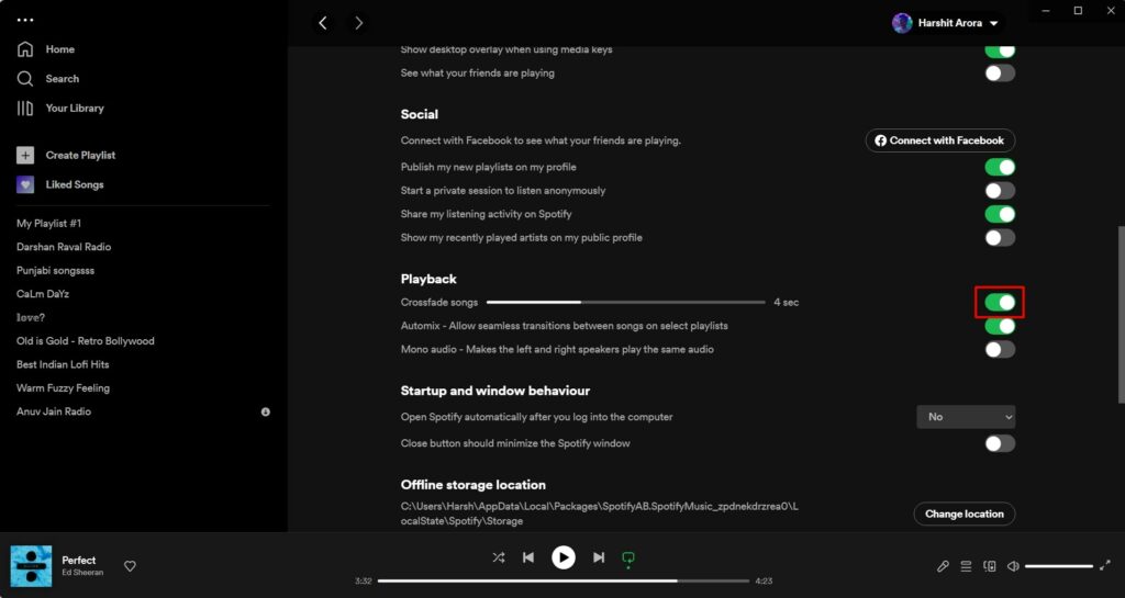 Ancak, CrossFade özelliğini devre dışı bırakmak hatayı da çözebilir. Crossfade özelliğini Spotify ayarlarınızdan kolayca devre dışı bırakabilirsiniz. Crossfade özelliğini devre dışı bırakmak için adımları izleyin.