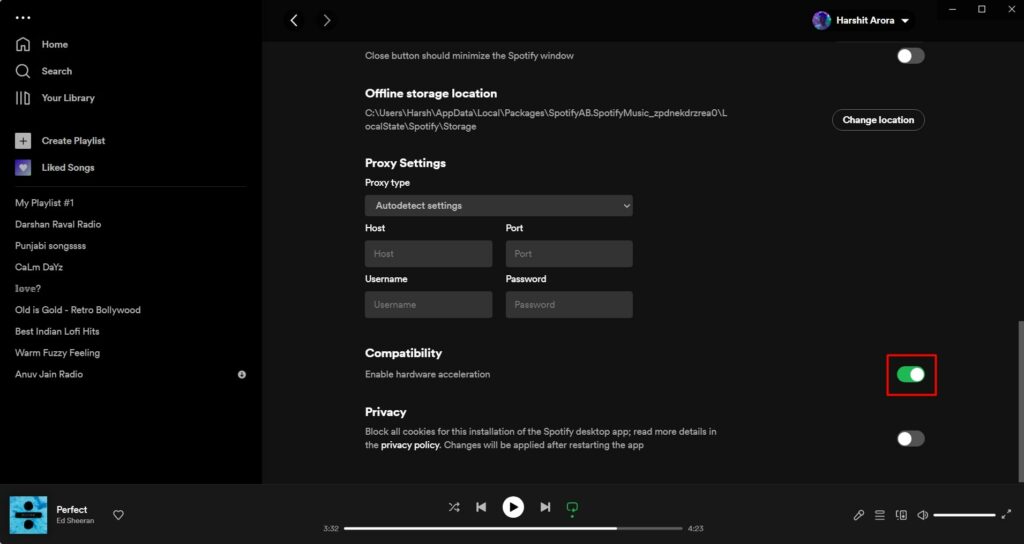 6. Spotify uygulamasında donanım ivmesini devre dışı bırakın