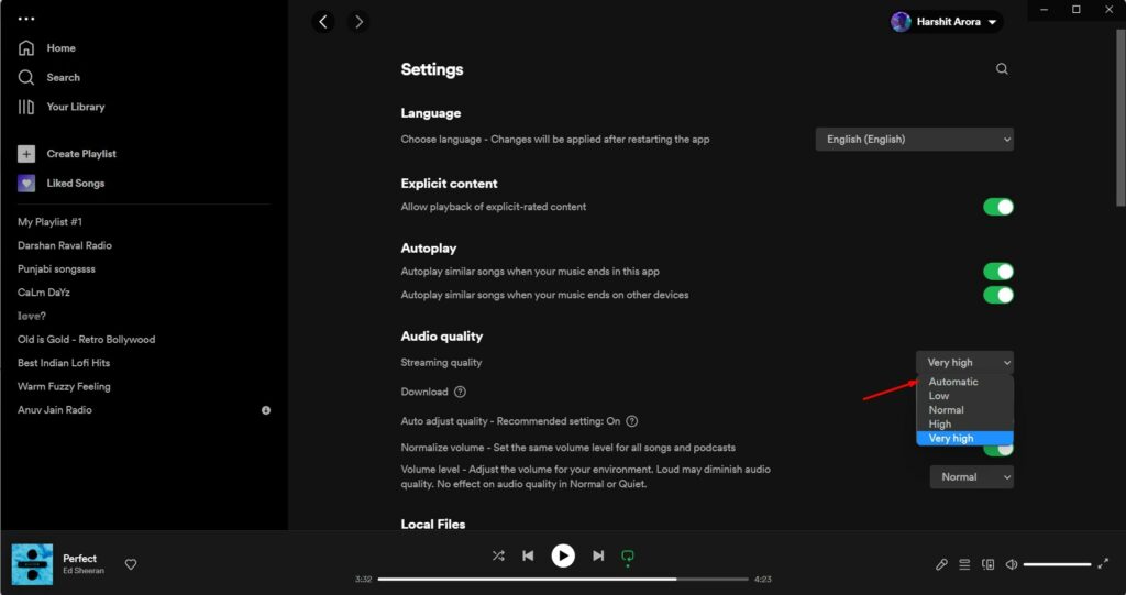 Premium'dan ücretsiz sürüme geçtiğinizde, akış müzik ayarları aynı kalır ve sorunlar yaratır. Neyse ki, akış ayarlarını değiştirebilir ve hatayı düzeltebilirsiniz. Böylece, adımları izleyin ve Spotify'daki müzik akışı ayarlarını değiştirin.