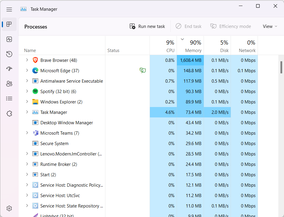 1.BasmakCtrl + Shift + ESCaçmak içinGörev Yöneticisi.