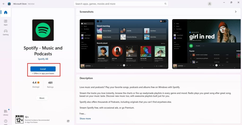 12. Microsoft Store'dan Spotify uygulamasını yeniden yükleyin