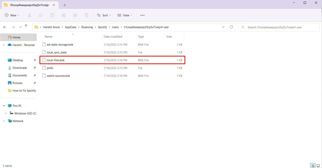 AçKoşmakprogram, tip%Uygulama Verileri%,Ve sonra basınAnahtar girin.AçSpotify klasörüVe hareket etKullanıcılaralt klasör. Bundan sonra,Spotify kullanıcısıklasör ve silinLocal-files.bnk dosyası.