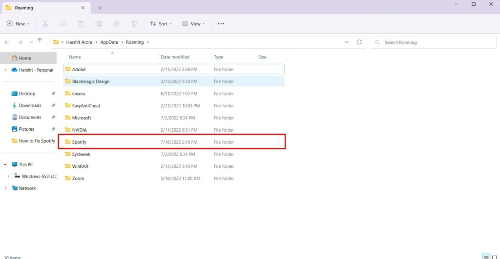 4.Çift tıklayınSpotify Kullanıcı Adıaçmak için klasör.