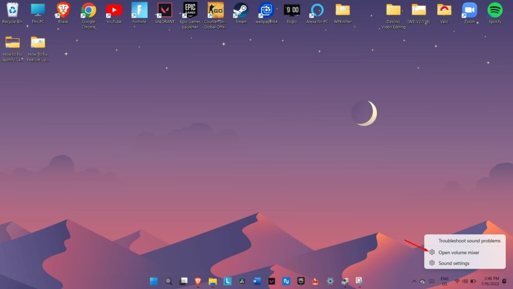 1.Sağ tıklayınHacim simgesiekranın düğme sağ köşesinde.