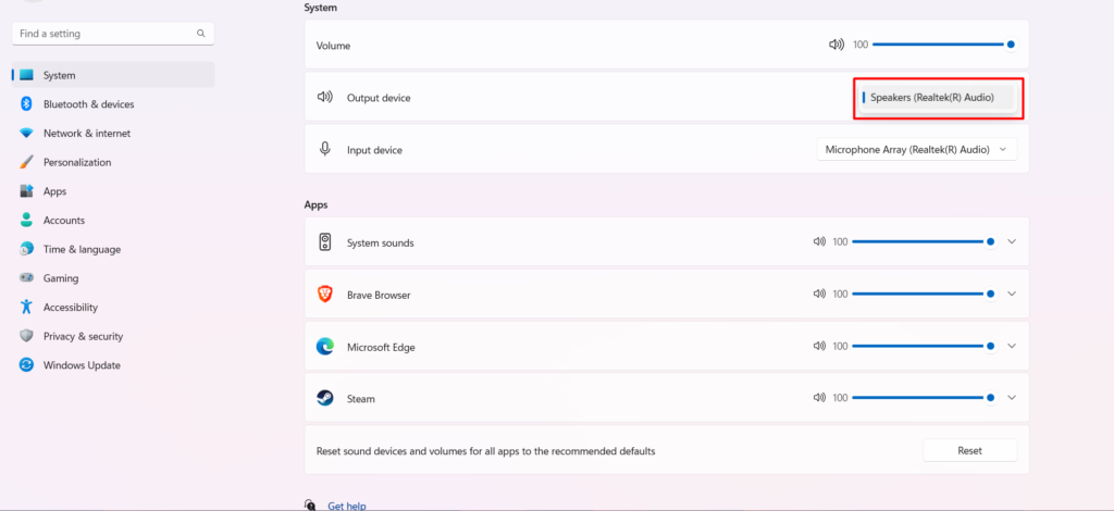 3.ArayınÇıktı cihazıaltında seçenekSistembölüm.