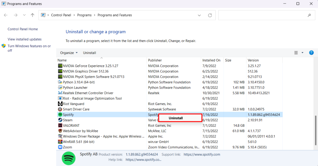 4.Sağ tıklayınSpotify uygulamasıve tıklayınKaldır.