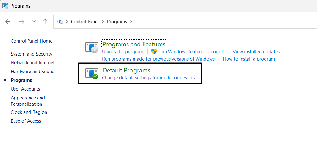 1.Öğle yemeğiKontrol Panelibilgisayarınızda ve seçinProgramlarBir sonraki ekranda seçenek.