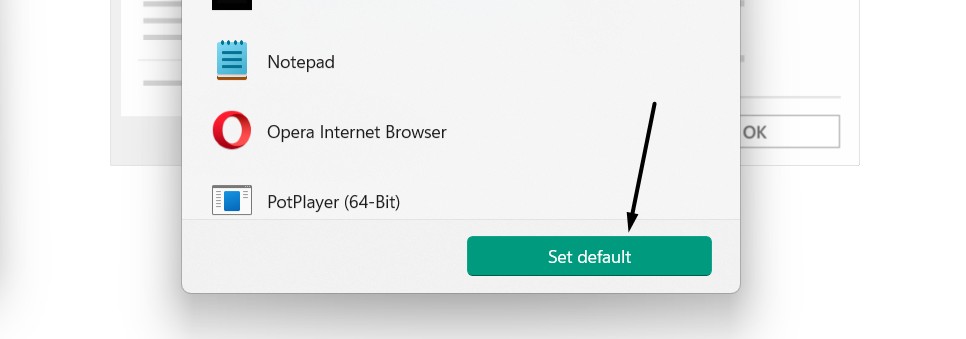 4.Son olarak,Varsayılan'ı ayarlayınayarlama seçeneğiMedya oynatıcıMP3 dosyalarını açmak için varsayılan bir uygulama olarak.