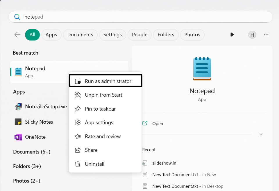 1.AçNot defteri uygulamasıPC'nizde idari haklarla ve tıklayınDosyaÜst menüde.