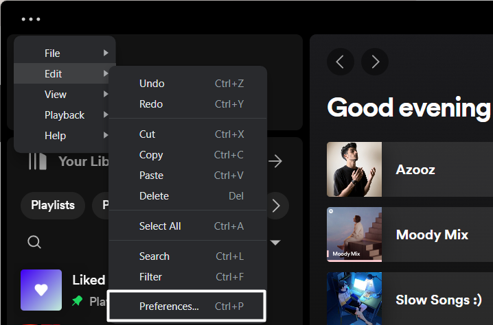 2.Spotify penceresinin sol üst köşesinde tıklayınÜç nokta (…)ve açılır listede tıklayınDüzenlemek.