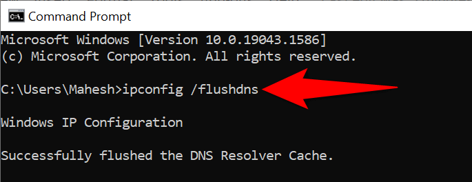 - Komut istemine aşağıdakileri yazın ve basınGirmek: ipconfig /flushdns