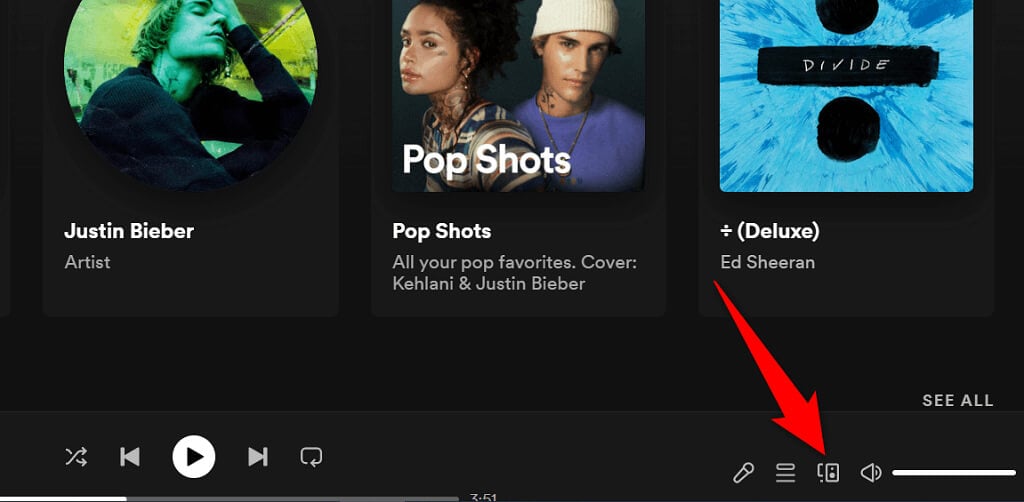 Spotify, müziğinizi çalmak için cihazı manuel olarak seçmenizi sağlar. Müzik oynatma için web tarayıcınızı kullanmak için Spotify'ı ayarladığınızdan emin olun. Durum böyle değilse, cihazı değiştirin ve web çalarınız çalışmaya başlar.