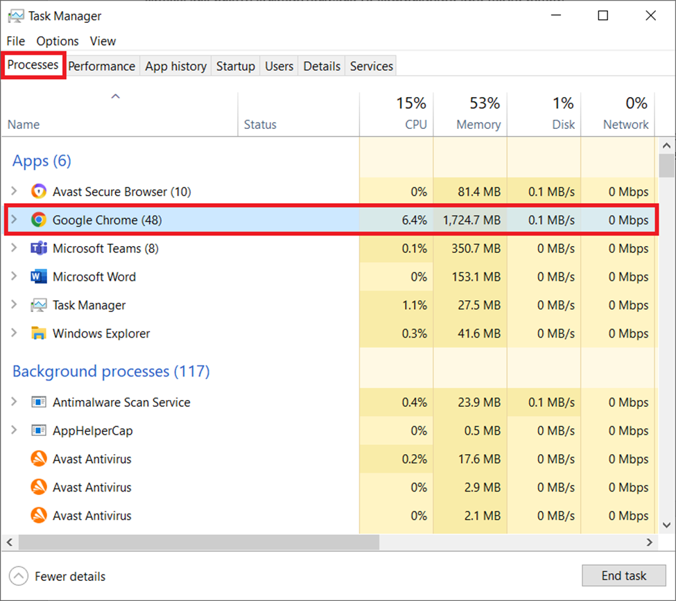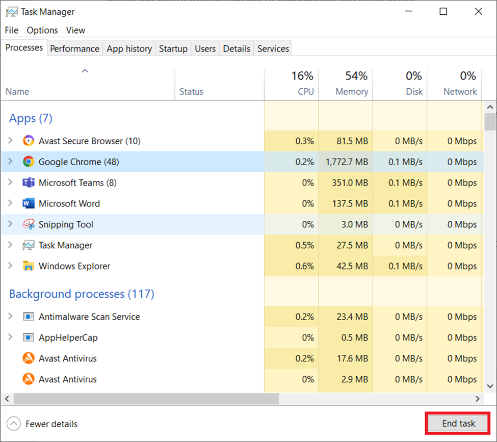 5.Şimdi,Son görevArka planda çalışan Google Chrome tarayıcı penceresini kapatmak için düğme.