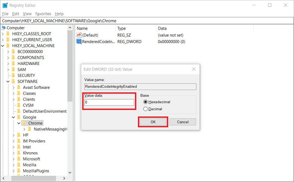 Location: HKEY_LOCAL_MACHINESOFTWAREPoliciesGoogleChrome