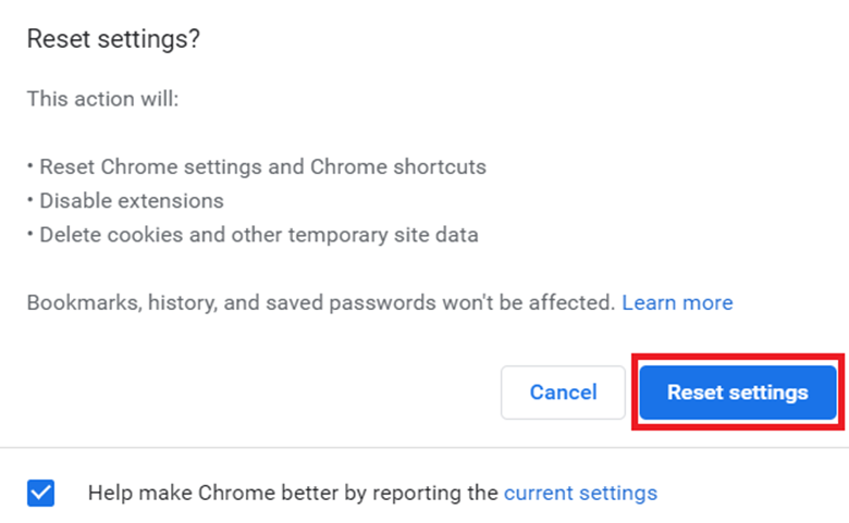 Hatayı yalnızca bir tıklama ile düzeltmek istiyorsanız, tarayıcıyı sıfırlamak etkili bir yöntemdir. Genellikle, tarayıcınızı ayarladığınızda, her tarayıcı ayar seçeneğini varsayılan mod olarak değiştirir.
